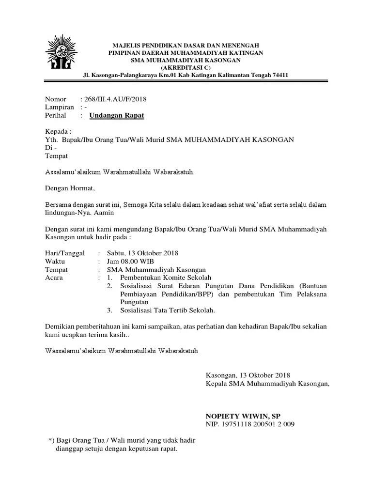 Contoh Surat Undangan Rapat Orang Tua Murid Sd - Surat Undangan Rapat Orangtua Raniah Nur Sahar Academia Edu : Bagi sekolah dasar (sd), sekolah menengah pertama (smp) dan sekolah menengah atas (sma).